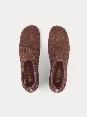 Like a foot jewel, the "My Alma" mesh ankle boot from Forte Forte showcases the foot while covering it in a sheer net strewn with gleaming crystals that catch the light with every step.