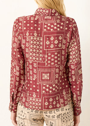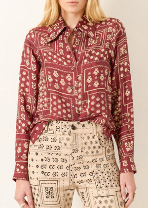 Cut from a hand-loomed silk, this floral shirt shirt has a '70s dagger collar and mother-of-pearl button front. The vintage-inspired shirt has a slim-fitting cut features a bandana-style patchwork motif.