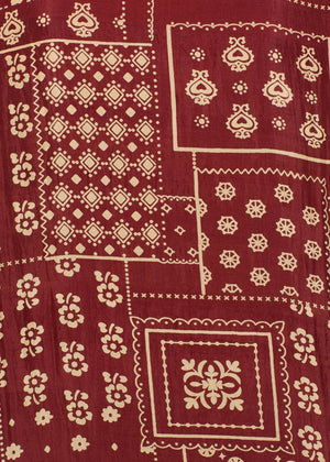 This textile was woven and block-printed by hand. Subtle printing and dye variations are part of the unique beauty of the garment and a signature of the artisan's hand.
