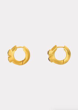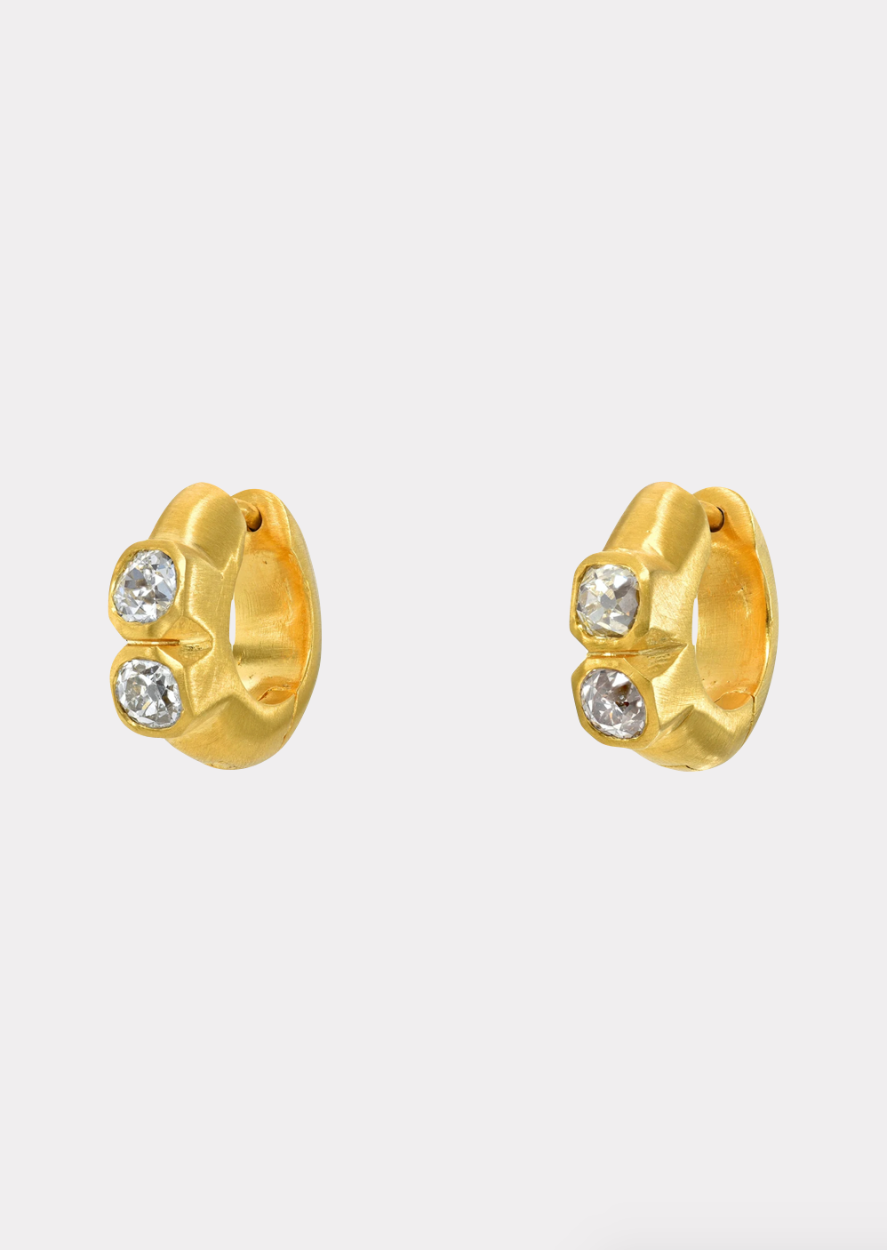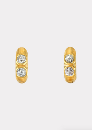 Double Diamond Signature Hoops featuring 1.07 cts Antique Old Mine Cut Diamonds set in 18K Fairmined Yellow Gold. 8mm Inner Diameter.