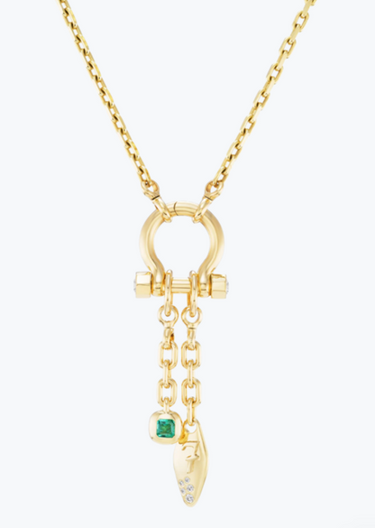 Handmade in New York City, each Carriage Drop pendant features a single Asscher cut emerald set within a solid 18k yellow gold bezel, hanging from a 3-link swivel chain. Designed to style seamlessly with the Uniform ObjectSystem Necklace.