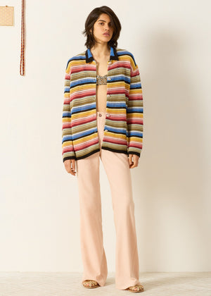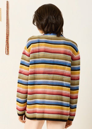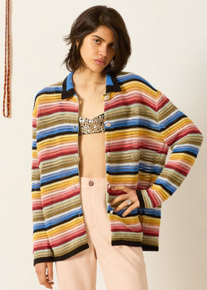 Crocheted from cotton, our open-knit shirt features rainbow stripes and handmade cowrie-shaped buttons by ceramist Daphné Verley. Cut for a relaxed fit, it channels a beachy ‘70s vibe.