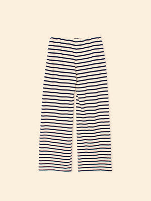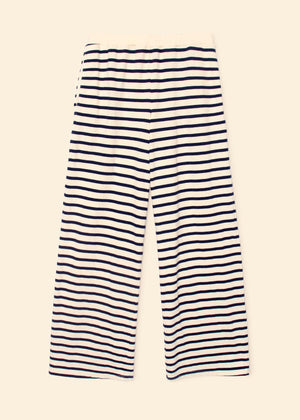Show your Stripes. Emmette is updated this season in Xirena's striped cotton French terry. Emmette is a pull on sweatpant with a wide leg, elasticized waist, and side seam pockets.