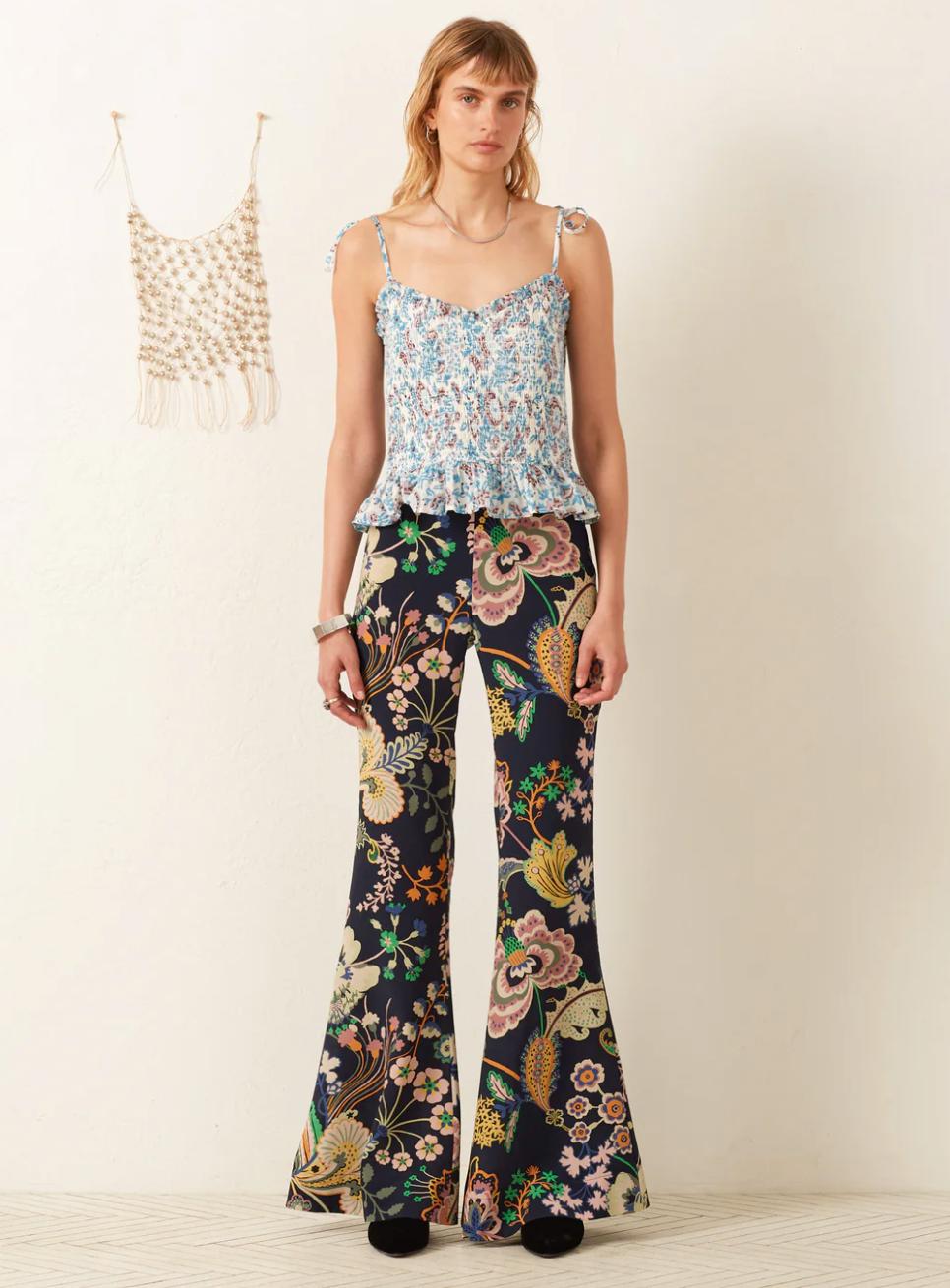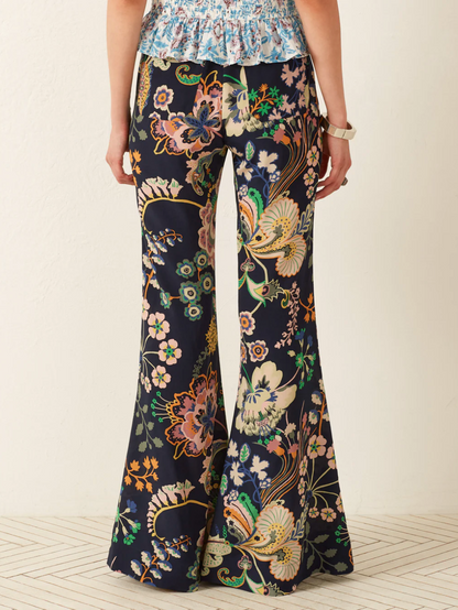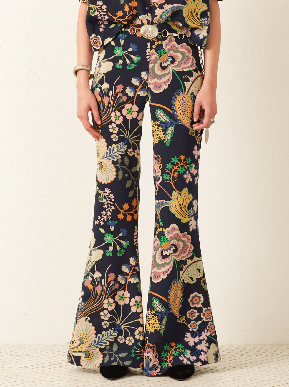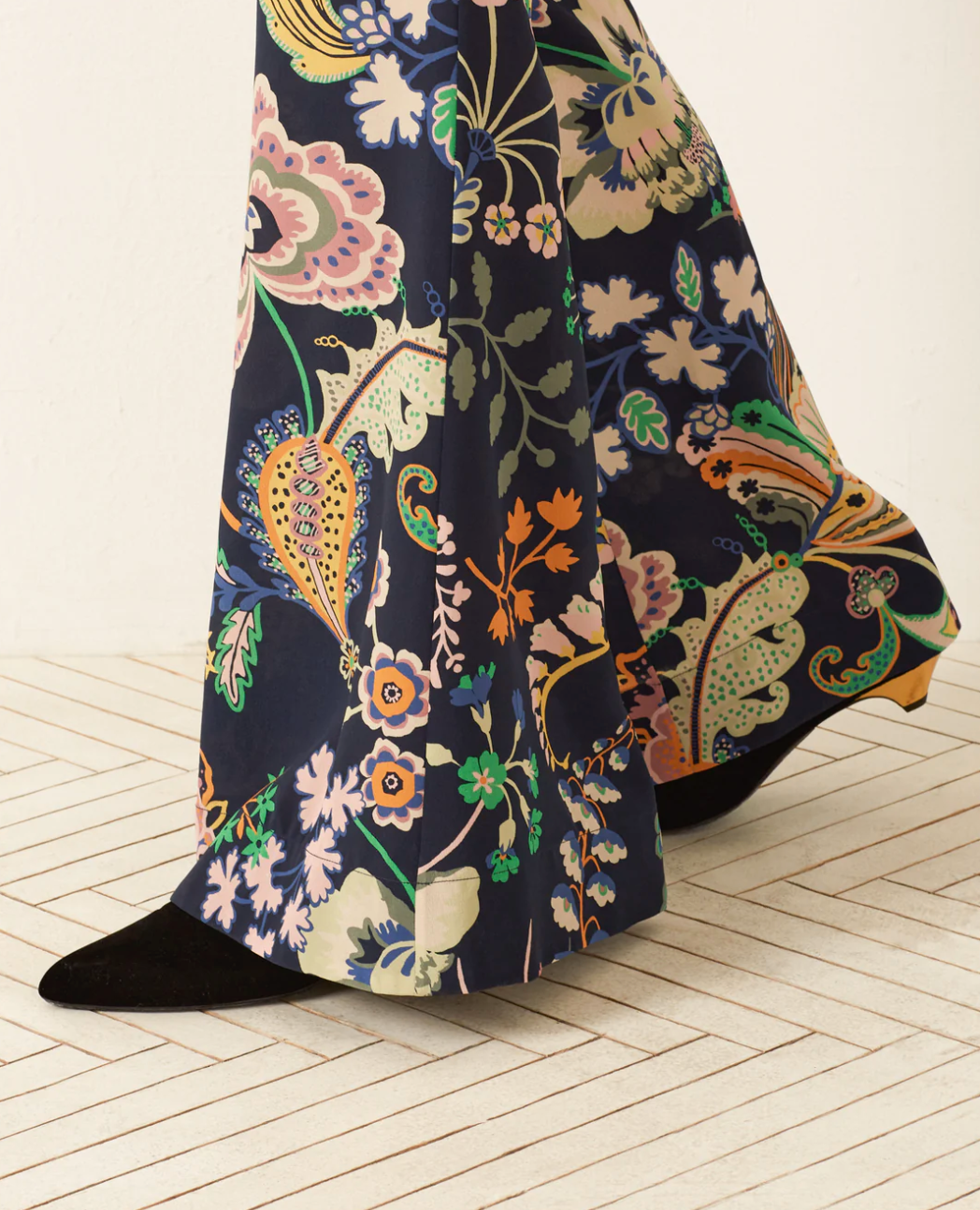 Cut from Italian silk crepe de chine, this Liberty-print floral pant is slim through the hip with a bell-bottom flare. The '70s-style pant has a lightweight drape and showcases a vibrant floral print from Liberty of London.