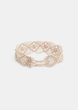 Crafted in Italy, this hand-braided belt embodies the artisanal elegance that defines Forte Forte. Intricate macramé-style weaving gives it a bohemian yet refined edge, while its sculptural pattern adds textural depth. Designed to cinch effortlessly over dresses, knits, or tailored trousers, it’s the kind of accessory that transforms an outfit into a statement.