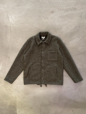 Vintage inspired sports jacket is cut from a warm, wool-polyester blend. Designed with a slightly boxy, slouchy silhouette. Perfect for layering up!