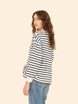 Made in Xirena's organic mineral wash terry, utilizing an eco-friendly dyeing process with natural dyes, this sweatshirt has full length sleeves and a raw edge hem.