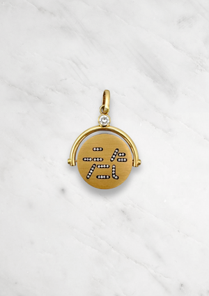 A modern heirloom with a twist, this pendant by Circa 1700 is designed to spin and reveal the "I LOVE YOU" message, spelled out in pavé diamonds. Handcrafted in 18k gold, this spinning talisman embodies love and bit of timeless sentiment. Elegant on its own or paired with other charms, it’s a piece made to wear close to the heart.