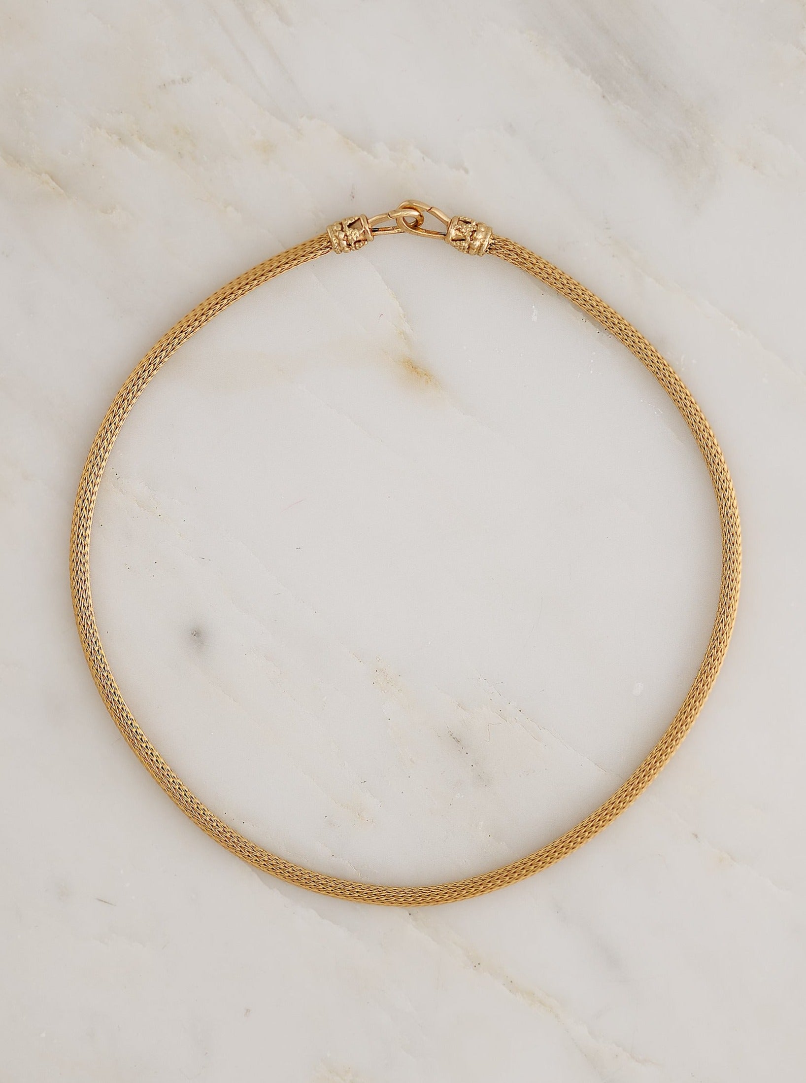 14k yellow gold chain. Handcuff finish at both ends. Wear it alone, or pair it with any of Marie's scapular pendants or barrel locket charms.