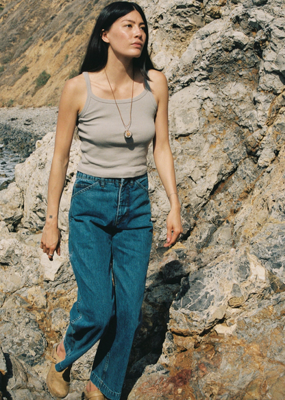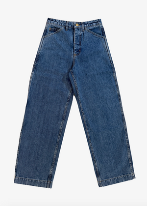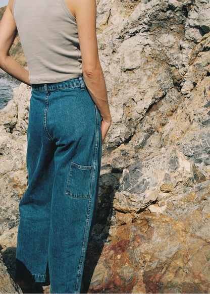 Made in a beautiful deadstock Japanese denim, the Isa Pant hugs in at the waist and is loose through the leg for a sophisticated yet relaxed fit. Patch pocket on the right leg for extra storage and a nod to the utilitarian painters pant.