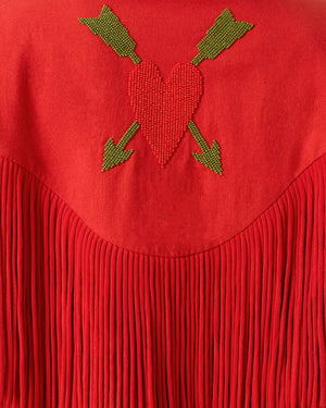 Crafted from textured cotton, this Western-inspired jacket features handmade silk fringe and patch pockets. Fully lined, the relaxed silhouette is finished with handmade lips-shaped buttons by ceramist Daphné Verley.