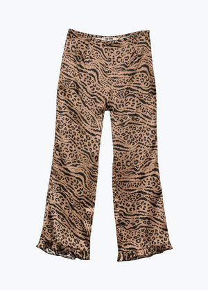 The Kaja Pant is cut from ultrasoft silk charmeuse in a bold leopard print with a superfluous drape that moves with grace (and a side slash pocket for practicality). Finished with a mid-rise waist and wide-leg fluidity, these pants feel luxe yet effortless. Perfect with a tank for daytime ease or a tucked-in blouse for nighttime edge.