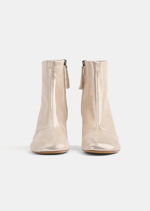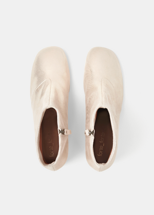 Crafted in Italy, these Forte Forte “My Alma” Ankle Boots are made from laminated leather in a luminous finish in a classic silhouette that balances softness with structure, catching the light with every step. A clean almond toe and sculptural block heel lend modern polish, while the ankle-skimming profile feels refined yet wearable. Designed to elevate denim, tailoring, or evening looks alike, this is a subtle statement boot - discreetly striking, endlessly versatile, and unmistakably Forte.