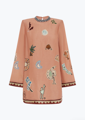 This dress knows what it’s doing. A softly tailored bodice sets the tone, while the colorful print and beaded neckline are bold enough to keep things interesting. Short, structured, and confident, this is the dress you grab when you want to feel effortlessly pulled together.