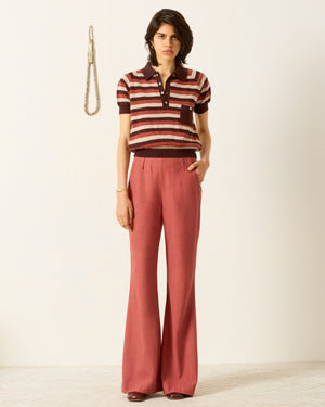 Knitted from soft wool, our striped polo sweater features a single chest pocket and a sporty silhouette. Slightly cropped, it pairs beautifully with high-waisted trousers.