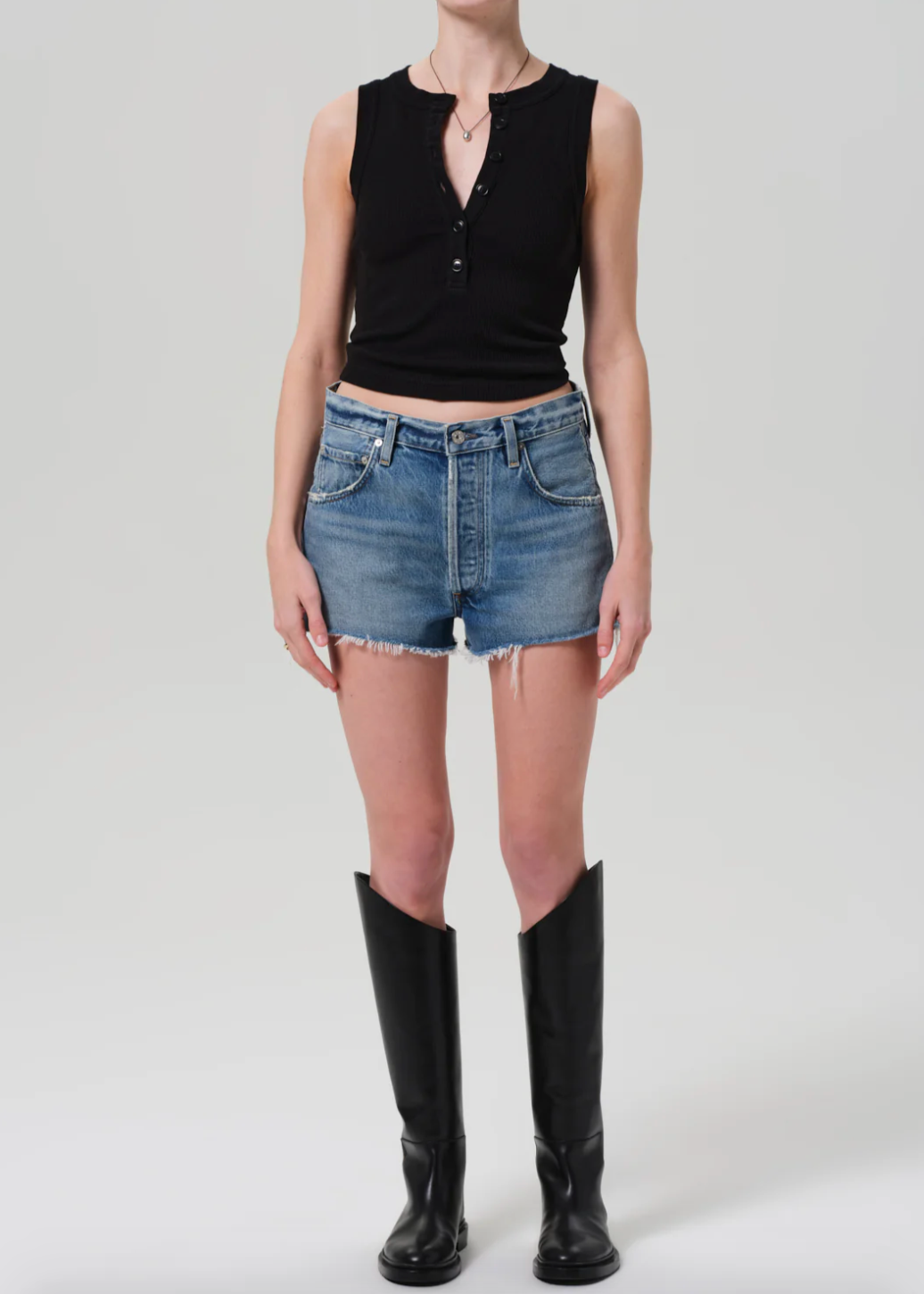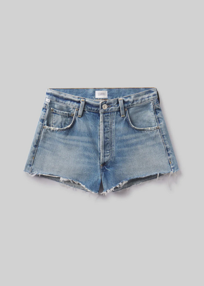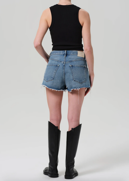 Crafted from 100% regenerative cotton, featuring a high-rise fit, short inseam, and raw hem for a laid-back, vintage-inspired look.
