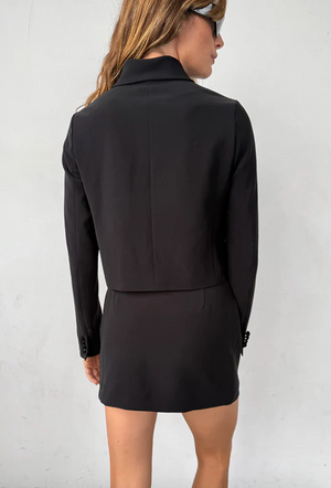 A mini skirt that offers a bit of corporate polish with downtown attitude. Tailored from stretch suiting fabric, the Lotta sits at mid-rise and features a hidden side zipper for a sleek finish. Peek inside and you‘ll find a bold leopard-print lining that adds a playful twist only you will know about. For a full power look pair it with the Ciao Lucia Arlene Jacket from the same collection.