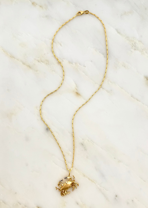 Gold and diamond Cancer zodiac pendant on 18" wheat chain.