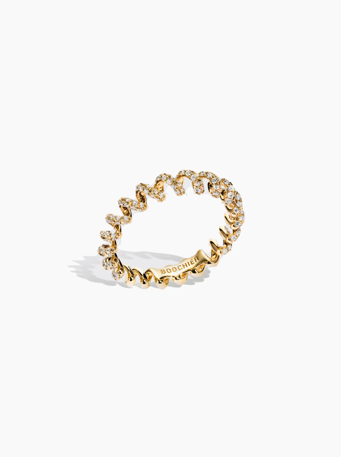 18k yellow gold ring featuring Boochier's iconic mini spiral design, set with white diamonds.