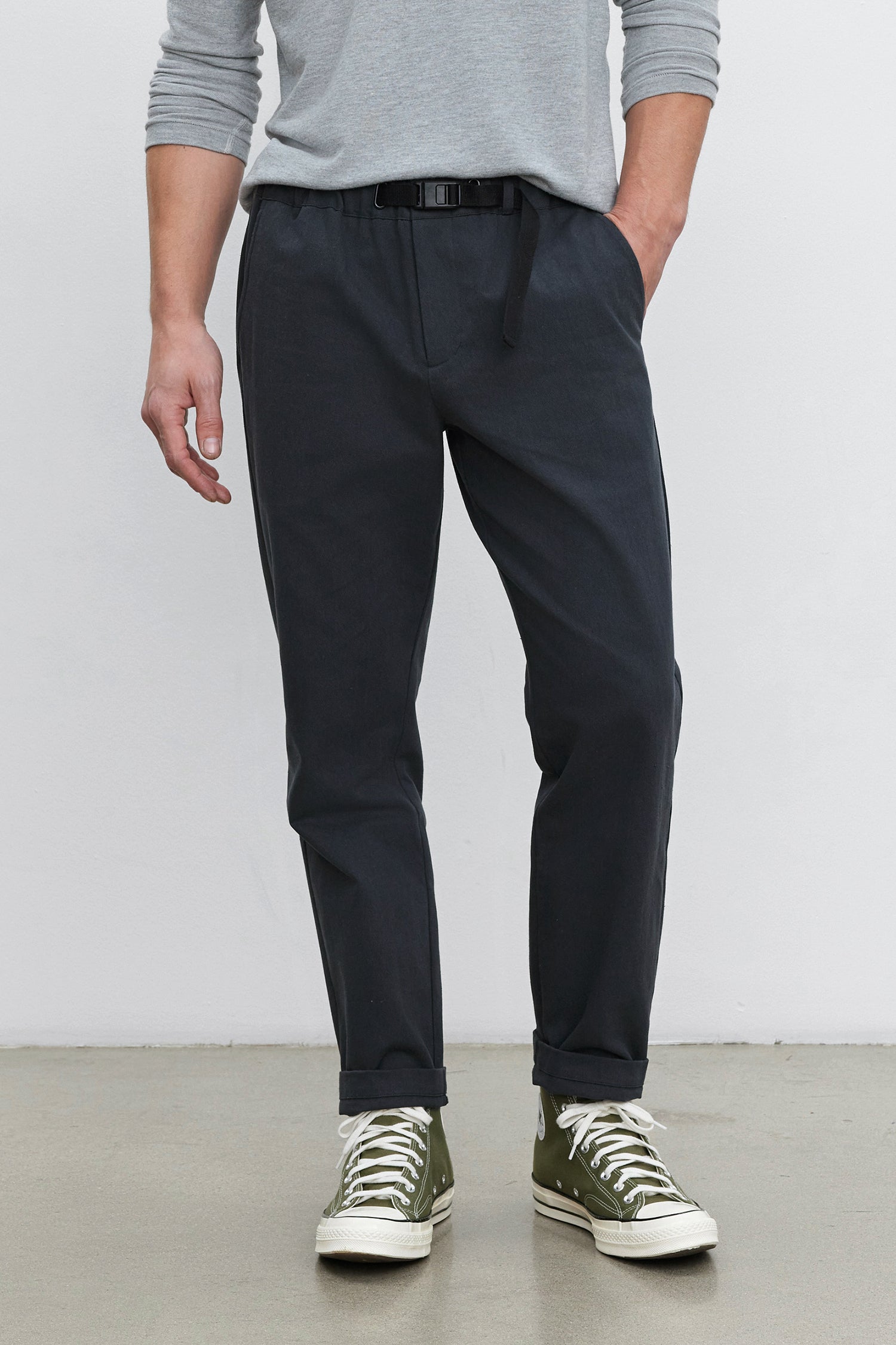 Featuring a cotton canvas fabric for breathability and durability. They're slightly tapered at the ankle for a modern silhouette and come with a built-in woven belt and elastic waist for a secure fit. This versatile design is perfect for any occasion.