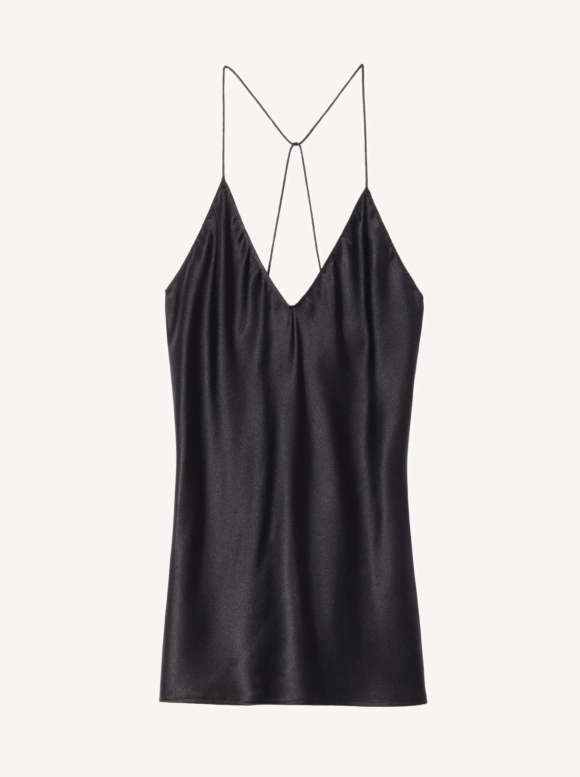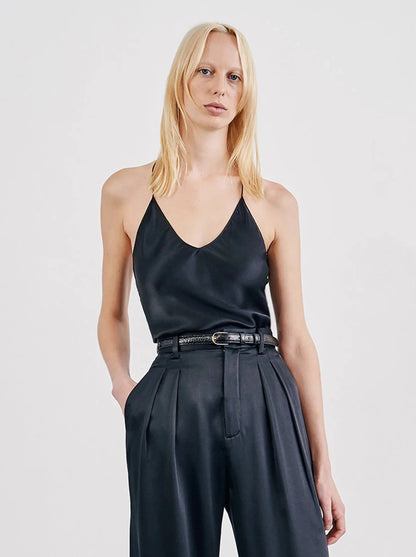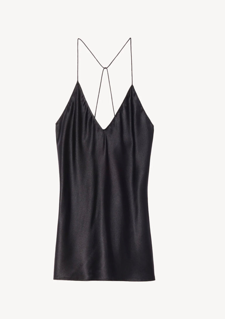 A modern take on our signature silk cami top, the Desiree is constructed from silk charmeuse and features a sharp v-neckline and crossed-strap at the back.