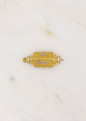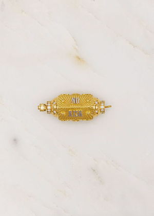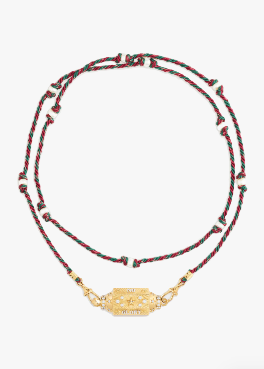 18k yellow gold barrel pendant, inscribed with "NO RISK NO GLORY" and set with diamonds. This locket is sold on a 73cm Silky Mauli link that can be worn in a double loop.