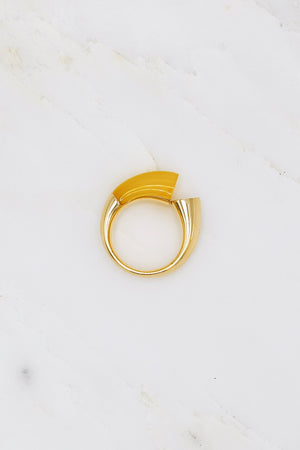 Where ancient symbolism meets modern elegance. The Oera Ring is cast in Fairmined 18k gold, sculpted into a softly flowing loop that echos Inanna’s Knot - an emblem of protection in Mesopotamian lore. Set with yellow agate and bright pink-orange sapphires, it’s a timeless ring that feels both personal and powerful.