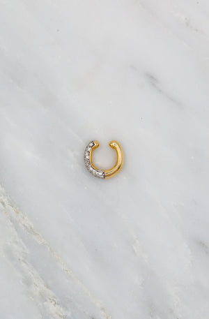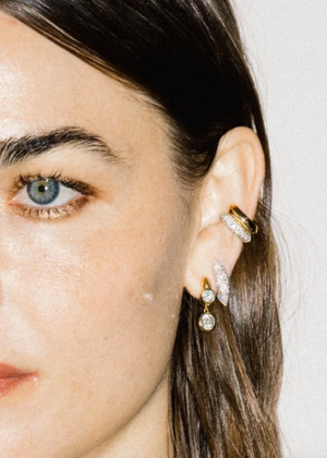 Crafted from solid 18k yellow gold and diamonds, Uniform Object's Pavé Shard Ear Cuff is a sleek, modern piece that brings an edgy elegance to any jewelry collection. Designed to hug the ear comfortably without requiring a piercing, this ear cuff is adorned with meticulously set pavé diamonds that add a brilliant, sparkling finish.