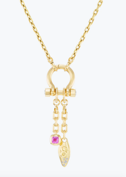 Handmade in New York City, each Carriage Drop pendant features a single Asscher cut pink sapphire set within a solid 18k yellow gold bezel, hanging from a 3-link swivel chain. Designed to style seamlessly with the Uniform ObjectSystem Necklace.