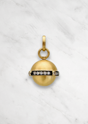 Crafted in 18K gold, the Qu’hier Que Demain pendant by Circa 1700 reinterprets a historic French love token meaning “I love you more than yesterday, less than tomorrow.” A hidden mechanism allows the nestled orb pendant to rotate, revealing secret details known only to the wearer — a diamond plus sign and baguette ruby minus sign surrounded by fine script. Romantic, mysterious, and exquisitely made, this piece is a timeless talisman celebrating eternal devotion.