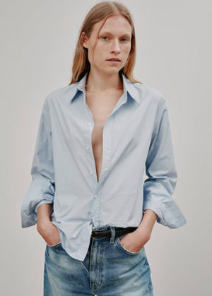 Classic fit button up shirt. Front placket. Standard cuff and sleeve plackets. Not oversized.