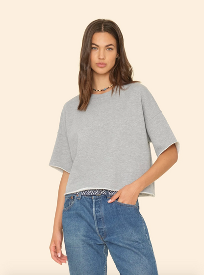 Made in ultra-soft fleece, the Romeo sweatshirt is designed with a boxy fit and features raw edge elbow sleeves, and raw hem.