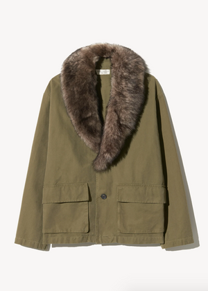 Designed with a modern edge, the Ronay Parka features a relaxed, oversized fit in piece-dyed cotton. Dropped shoulders and generous patch pockets with pleated detail set a utilitarian tone, while horn-button front closure adds refinement. A removable Toscana sheepskin shearling collar transforms this parka from city staple to alpine cool. Fully lined and crafted for layering, this parka is practicality dressed in sophistication.