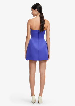 Fall in love with this lapis-blue bustier mini dress, featuring delicate floral appliqué, sweetheart neckline, and a flirty A-line skirt. Its rich blue hue pops like the perfect summer sky, while the appliqué floral bustier feels like an actual garden stitched into a dress. With its sculpted sweetheart neckline and flirty A-line skirt, the fit is equal parts polished and playful. It's cinched where it should be, and breezy where it counts.