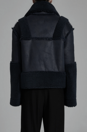 Crafted from exceptionally soft vegan leather, the Marlise Jacket offers a touch of both style and warmth. The shearling lining and cuff details add a fashionable edge while ensuring you stay cozy on colder days. The zip front features an innovative overlap that lets you wear it up for enhanced warmth or down for a stylized look.