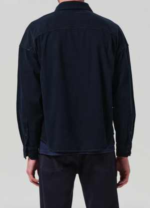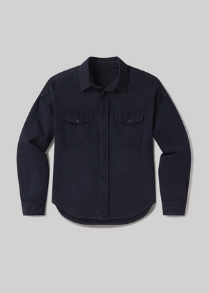 The Shigoto Shirt is a workwear-inspired essential, cut from rigid cotton denim with a soft, broken-in feel. Designed with a classic collar and clean button front, the silhouette is tailored yet easy. Dark indigo adds a refined edge—ideal layered over a tee or styled solo with tonal denim.
