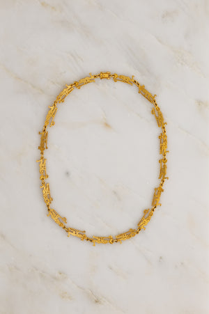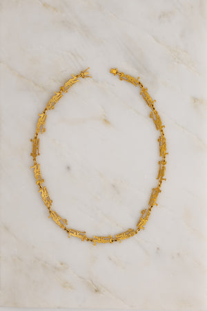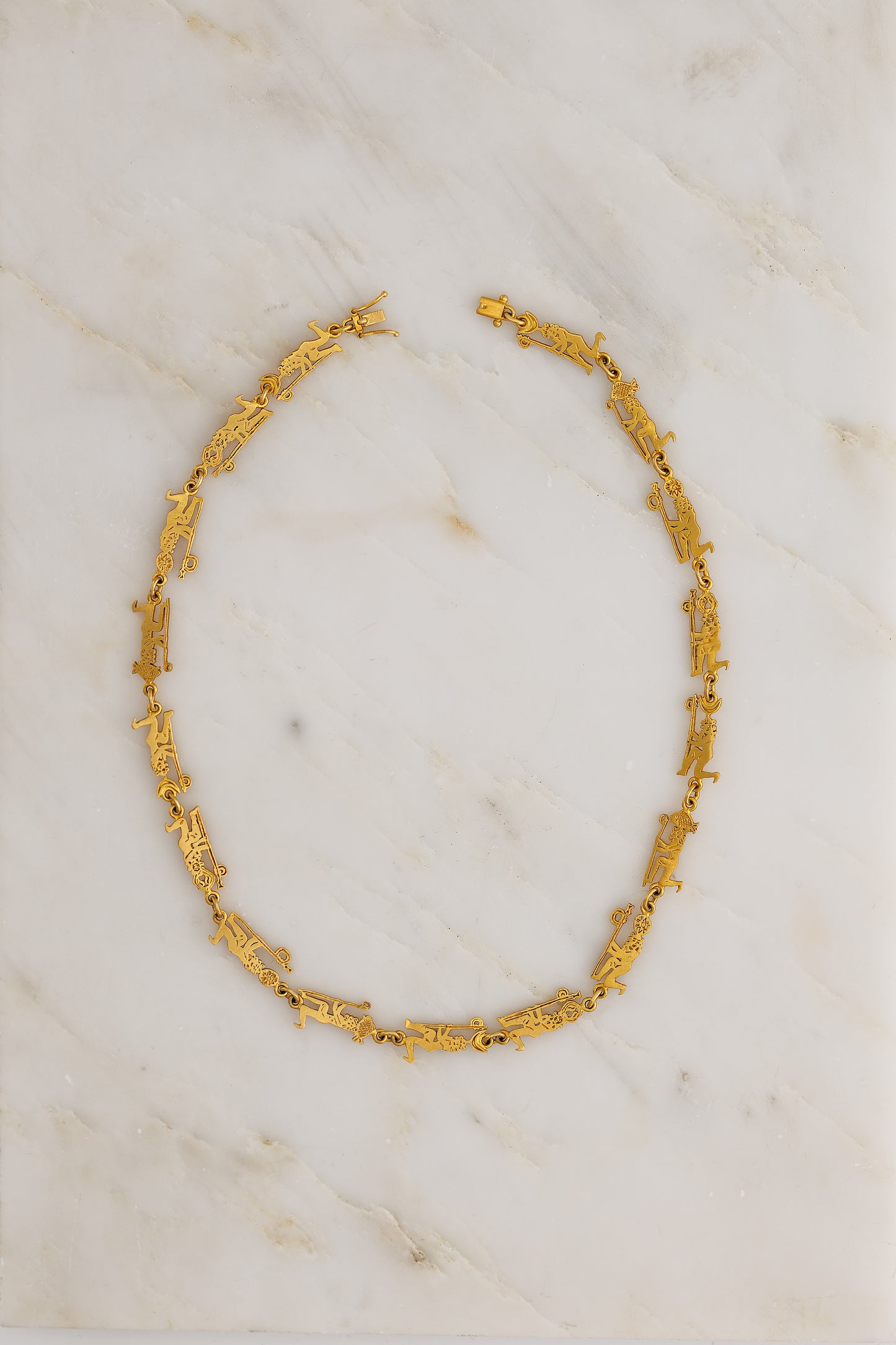 17” Hand carved Sisters Necklace featuring ancient Egyptian imagery in 18K Fairmined Yellow Gold.