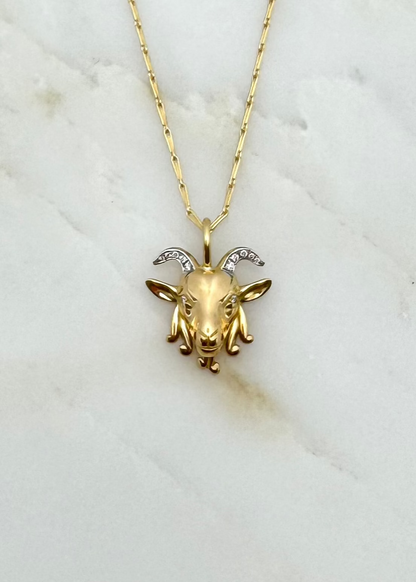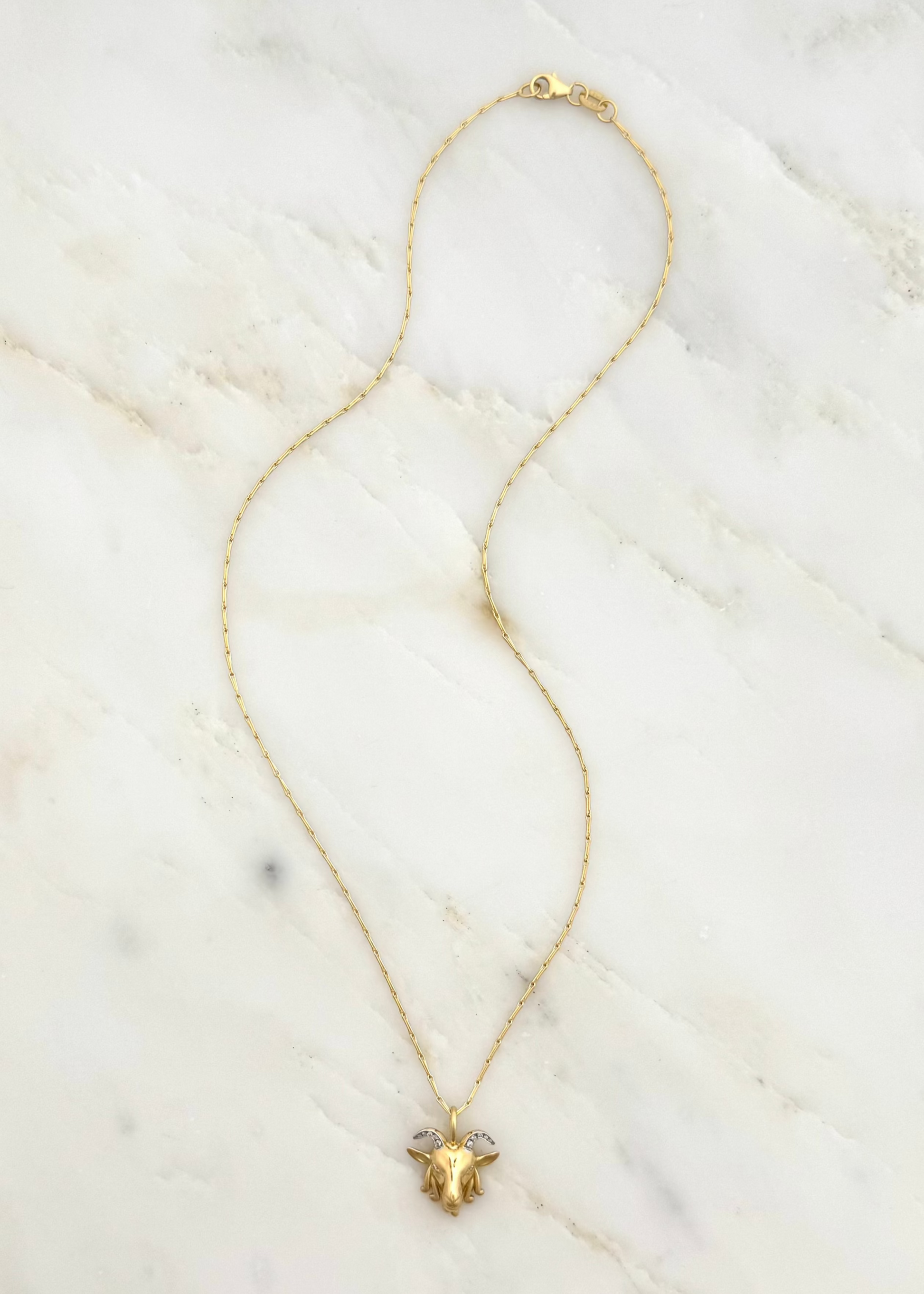 Gold and diamond Capricorn zodiac pendant on 16" wheat chain. From the Zodiac Collection by Brent Neale.