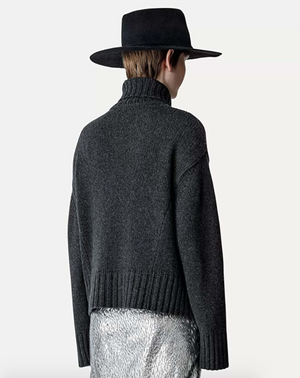 Oversized knit in baby suri alpaca wool with a brushed finish for a soft fluffy feel. The exaggerated collar complements the dropped shoulder and straight fit that falls from the bust.