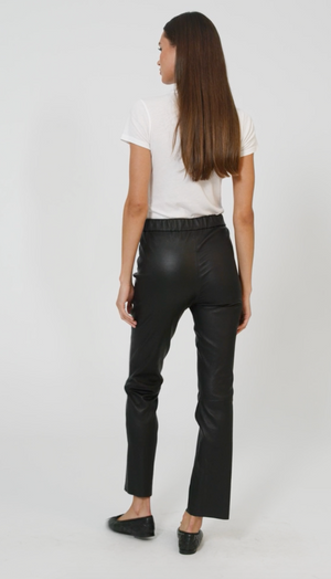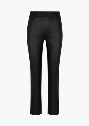 A classic cigarette silhouette pant, made in SPRWMN's signature stretch-leather, is effortlessly chic and easy to wear. Designed for a relaxed fit with a comfortable elastic-stretch waistband, these pants combine the look of a classic pant with the comfort and wearability of a legging. Lambskin gives naturally over time; if in-between sizes, size down