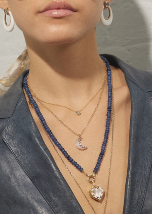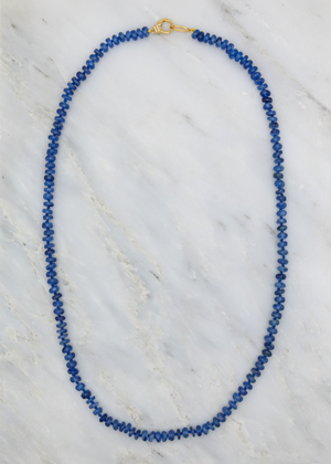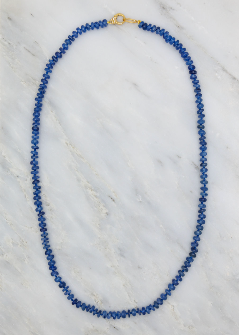 This exquisite 22" necklace features 6mm rondelle kyanite beads on a small diamond clasp.