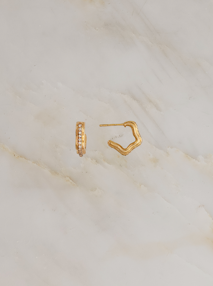Handcrafted from 18k yellow gold and diamonds, with sculptural details reminiscent of waves.