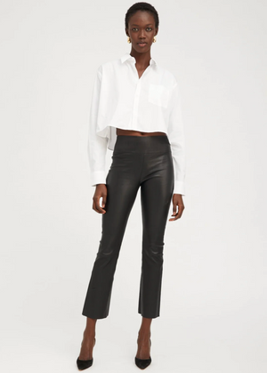 These leather pants, made in stretchy French plongé leather, feel like a second-skin due to their extreme breathability – a property exclusive to SPRWMN – and can be worn every single season. These pants feature a Japanese elastic waistband for a figure-sculpting fit with a high, skinny rise that flares subtly at the ankle.