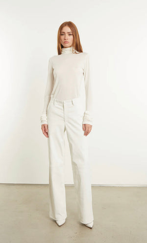 Low-rise trousers made from buttery-soft, stretch-leather. Designed in a relaxed-fit that sits below the waist, featuring two functional pockets and a concealed zipper.
