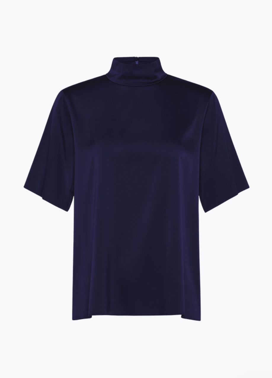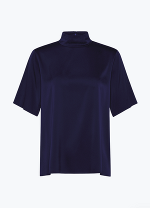 Made from fluid stretch silk satin, this short-sleeve top features a gently structured mock neckline and a relaxed silhouette that glides effortlessly over the body. It's understated, elegant, and effortlessly versatile. Perfect tucked into high-rise pants or worn loose for a more relaxed look.
