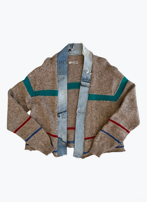 One-of-a-Kind Striped Cardigan with Denim Collar