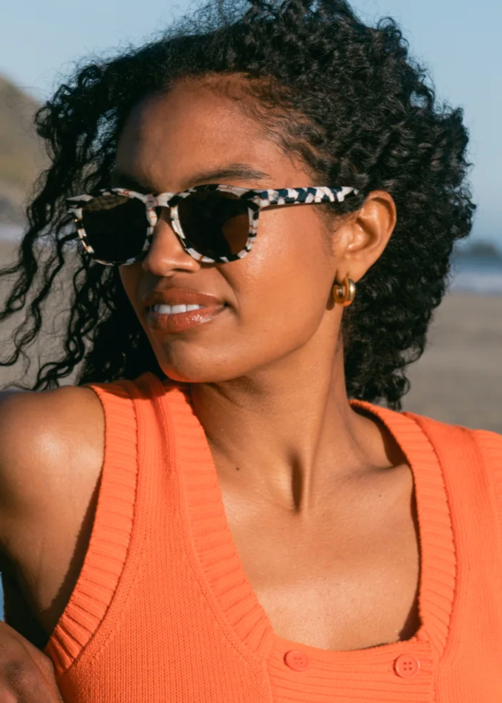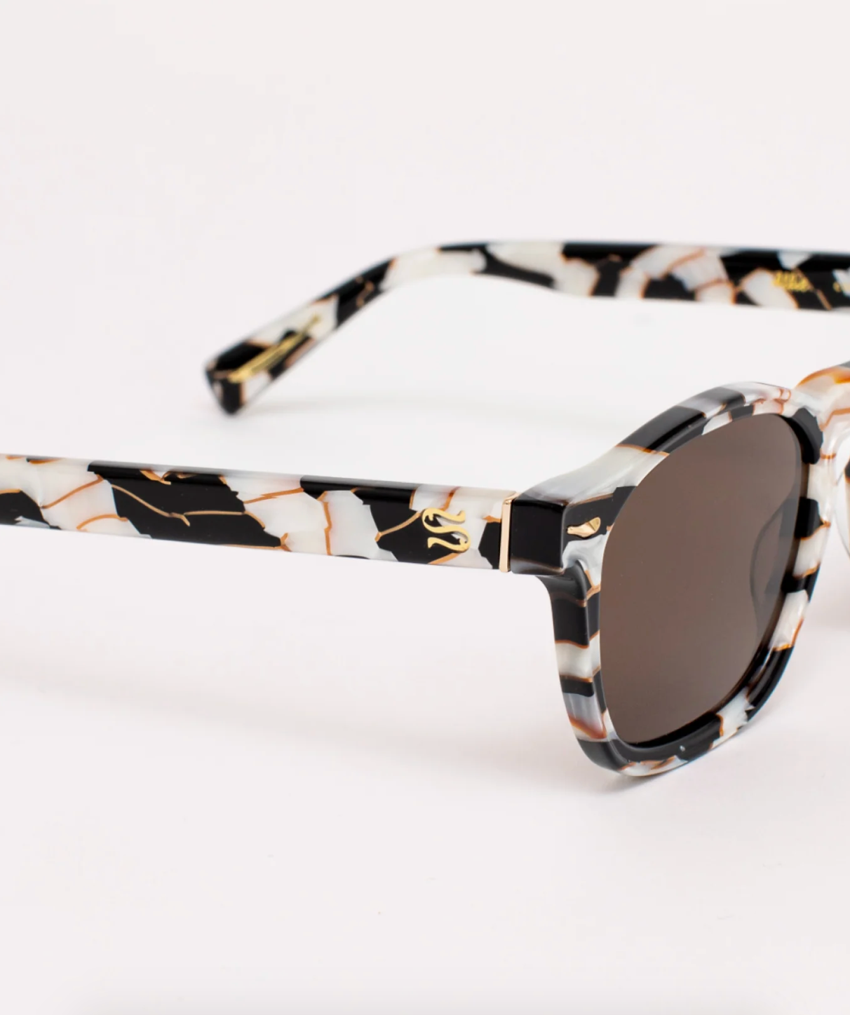 The SARDINE Alfie sunglasses give vintage aviator vibes with a space-cowboy twist. With marbled gold frames and smoky lenses, this unisex style is bold, lightweight, and effortlessly cool—made to turn heads from desert highways to downtown streets.