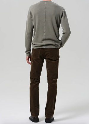 These corduroy Gage Jeans are cut for a clean silhouette—mid-rise with a slight taper below the knee—and crafted from soft, textured stretch corduroy for all-day comfort with a tailored fit. The subtle taper delivers modern tailoring meets wardrobe ease. Finished with zip fly and a balanced fit, they offer structure without rigidity.