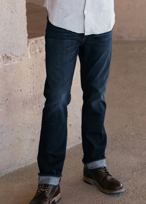 An ideal everyday jean, crafted from single-wash Indigo Japanese 10.5oz 4-way stretch selvedge. Woven on traditional shuttle looms in Japan, this denim blends classic selvedge structure with a hint of stretch for effortless comfort. The Hammer fit offers a clean, straight-leg silhouette with subtle room through the thigh.