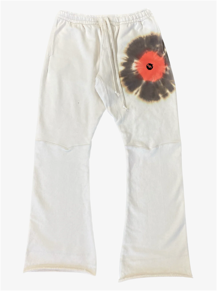 Cotton French terry, finished with the brand's iconic record embroidery centered in the tie dye, hand done in the HFR Laurel Canyon studio. Finished with a raw hem and our signature pocket and leg details.